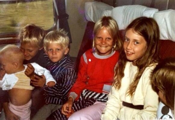 Vahid with his siblings and friends on a train in Sweden