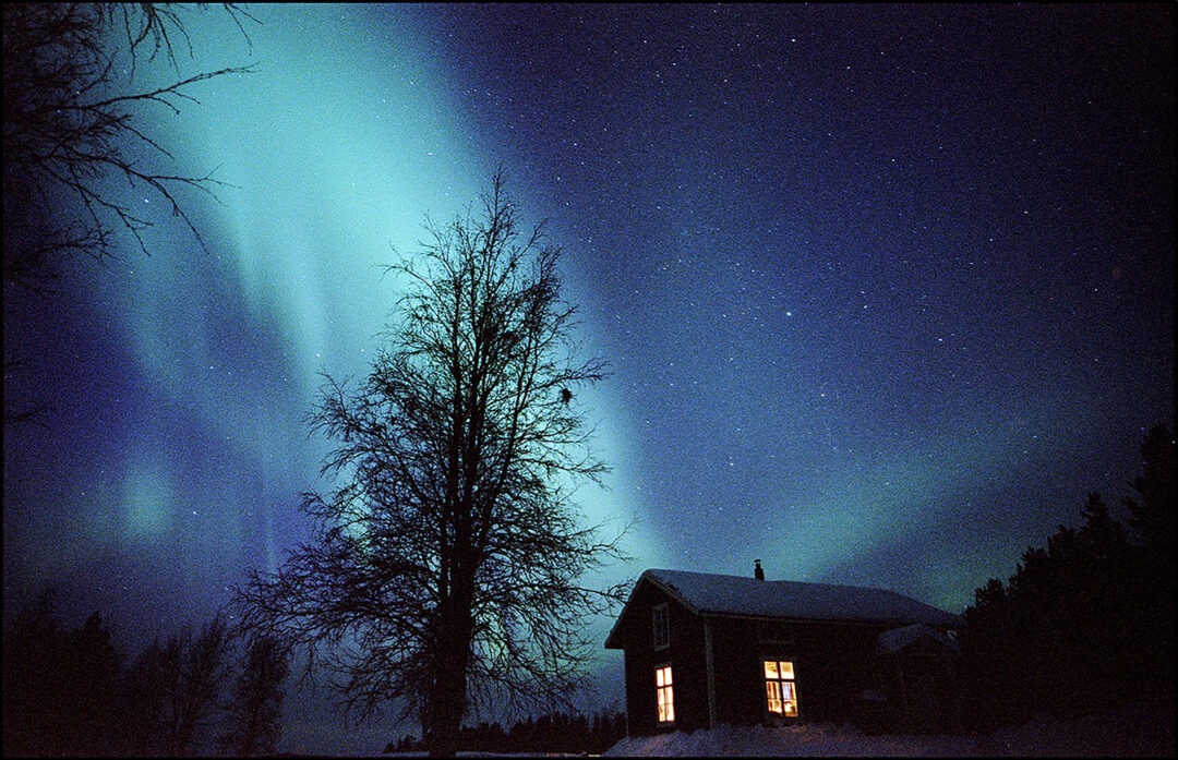 Northern Lights over cabin in Sweden Leica camera