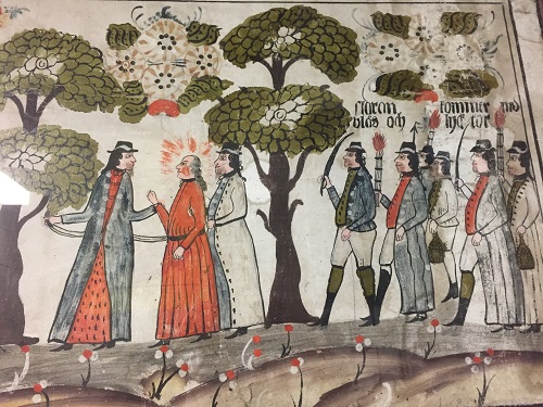 BonaderFriday, Dec. 12 - Sunday, Jan. 11, 2026One of the most remarkable examples of Scandinavian folk art is the painted picture indigenous to the Swedish peasant home. The commonly used name for these peasant paintings is bonader, and their provenance was to decorate the walls and ceilings of the homes at Christmas time and on feast days, thus adding a note of color and gaiety to the otherwise dark interiors. Between festivities, these canvas or paper panels were taken down and carefully kept, to become a part of the family inheritance. The collection of bonader at the Museum is a collection of extraordinary works on linen and paper, with vegetable and mineral pigments that achieve arrays of color. They were sized for specific wall spaces and hung unframed. Several of the artists were identified, and more than 100 may have practiced the craft. Donated to the Museum in 2000 by the Art Institute of Chicago, the 29 Bonader represent the eighth largest known collection. They originated in 1931 among acquisitions from world traveler Florence Dibell Bartlett of Chicago. Inspired by what she viewed as a decline in creation of folk art, Bartlett acquired pieces she found in 37 countries. She was the founder in 1953 of the Museum of International Folk Art in Santa Fe, New Mexico. |